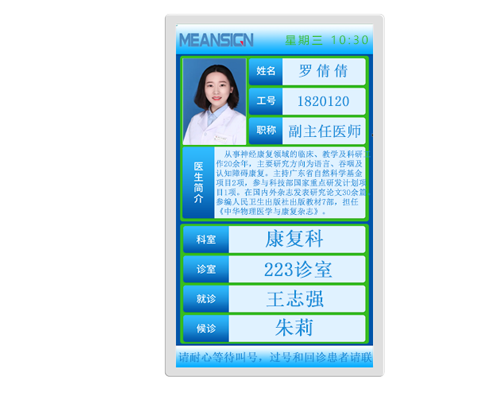 用途:醫生診室門口屏/二級分診屏