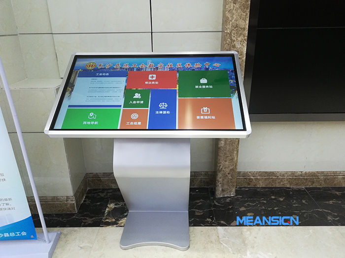 在工會大廳,放置臥式觸摸查詢一體機,立式觸摸一體機,移動觸摸一體機,來往的職工可以第一時間通過觸摸一體機,查詢需要的資料。觸摸一體機與工會內部系統對接,除了可以進行信息發(fā)布,發(fā)布工會動態(tài)外,還提供線上入會申請、工會組建、幫扶救助、法律援助、就業(yè)服務、普惠福利等入口,方便群眾自助瀏覽,深入了解工會的各項職能服務。除外,還具有辦事指南、地圖導航,方便大家前往目的地,充分體現工會數字社會服務的智能化、人性化、現代化,以服務為重點,為職工提供精準化、多層次服務。